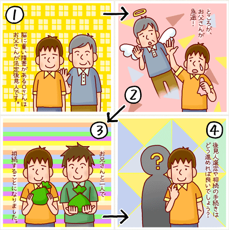 20代のOさんは脳に重い障害があり、お父さんが法定後見人になっていました。お父さんが急に亡くなり、お兄さんと2人で相続をすることになりましたが、後見人選定や相続の手続きはどう進めればいいでしょうか?Oさんの後見人はお兄さんが引き受けることになりました。