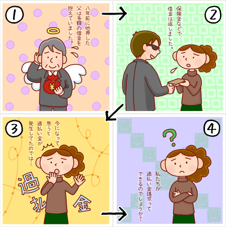 8年前に父が亡くなった時、あちこちの消費者金融から長年にわたって借金をしていたことがわかりました。その時は、驚いて保険金などで返済しましたが、今頃になって、過払い金が発生していたのでは?と気付きました。私達遺族が、父の昔の過払い金の返還を請求することはできますか?