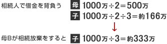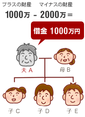 相続人のB、C、D、Eさんは、相続することで、2,000万円−1,000万円=1,000万円の借金を背負うことになります。